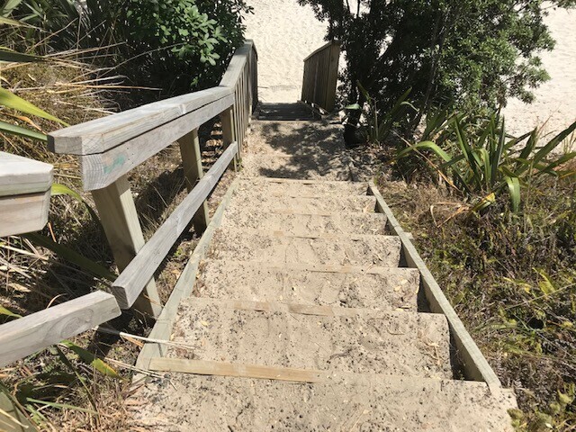 New stair access to Otama Beach on the demain has been built by the local community and ORG in collaboration with DOC. The purpose of the new stairs is to improve access to the beach and to redirect foot traffic away from the roots of one of the large pohutakawa trees on the bank which was on the previous access path. We are hoping that our efforts will prolong the life of this very old tree.