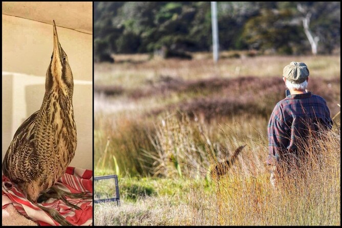 A rescued Matuku – Hurepo (Australasian Bittern) was released into the Otama Wetland Reserve on the 26 of March by DOC Ranger Troy McDonald and Paul Kington from the Otama Reserves Group. The Matuku has been cared for by Annemieke Kregting from Kuaotunu Bird Rescue who looks after native birds that are found unwell and distressed, with the aim to release them back into the wild when recovered.