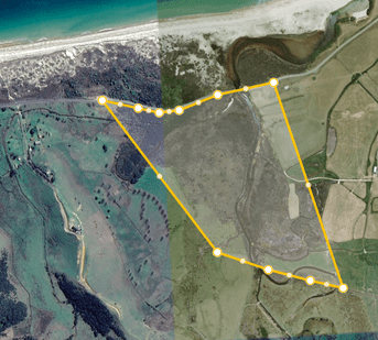 The wetland’s catchment area includes native forest, and pine forestry in the background hills, and it borders adjacent farm land, a nationally significant regenerating sand dune system, and feeds into a lagoon area which flows onto the foreshore. It is filled by tidal movement when open to the ocean.