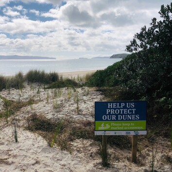 TCDC and Coastcare - Waikato are undertaking a coastal restoration project on the TCDC Road Reserve and coastal area at the western end of Otama Beach, which borders the Otama Sand Dune Reserve. This project is managed by the TCDC and Coastcare Waikato Coastal Restoration Coordinator, and is part of a shoreline management pan for the Thames Coromandel coastline to protect against coastal erosion.